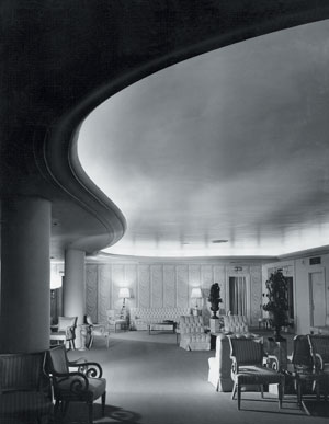 One of my favorite interiors is his Saks Fifth Avenue interior of 1939. (Scroll down). On the same website, you can see another of my favorites, Perino’s, which unfortunately is now gone. I also admire his imprimatur at the famed Beverly Hills Hotel, both in the Fountain Coffee Shop and the signage.
