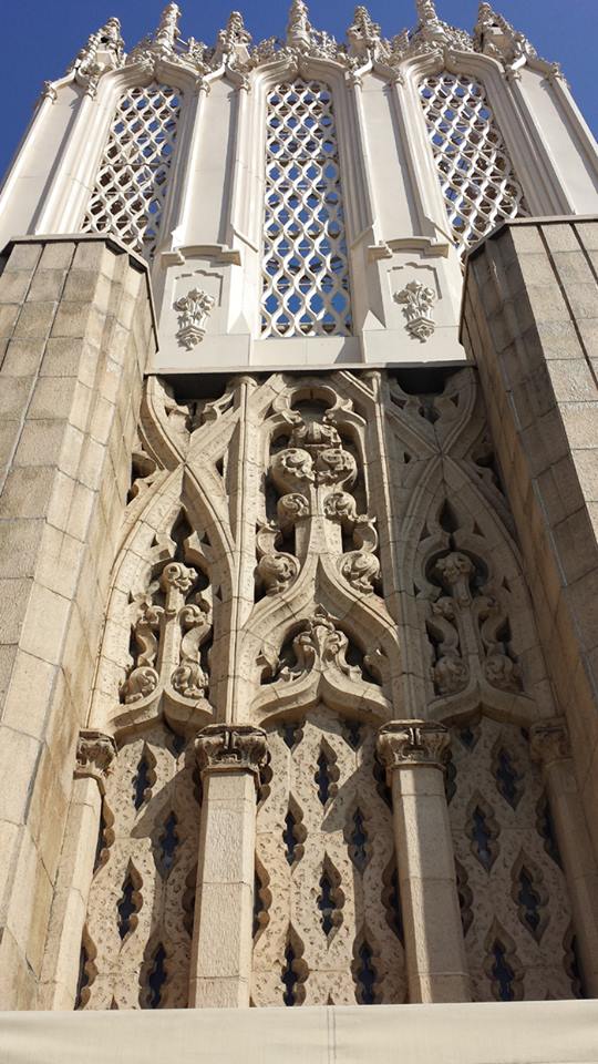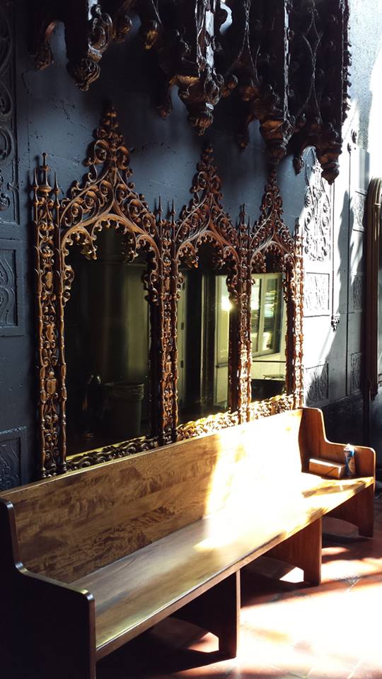 Some of the design details I particularly liked were the Haas brothers’ drawings of movie stars and L.A. icons, like palm trees and mountains, on the walls of the restaurant; the Gothic plasterwork in the lobby above the bank of elevators; and the Spanish Colonial style of the breathtaking, 1,600-seat theater, including murals and elaborate molding with its worn patina, that was modeled after the Cathedral of Segovia in Spain.