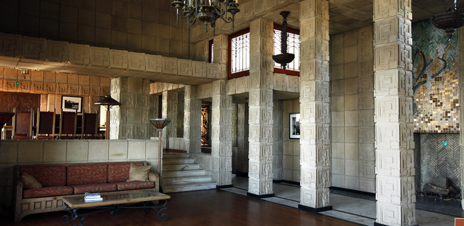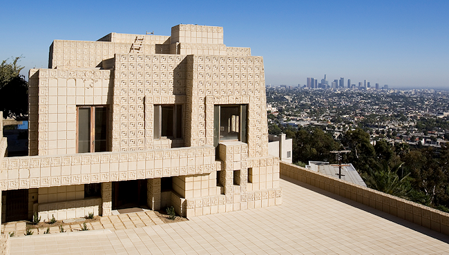 Built for Charles and Mabel Ennis in 1924, the structure – a designated city, state, and national landmark – is the fourth and largest of Wright’s textile block designs in the northern Los Angeles area. Its last resident owner, Augustus O. Brown, who donated the home to a public heritage trust, died in 2002 – and the house has been vacant since then.