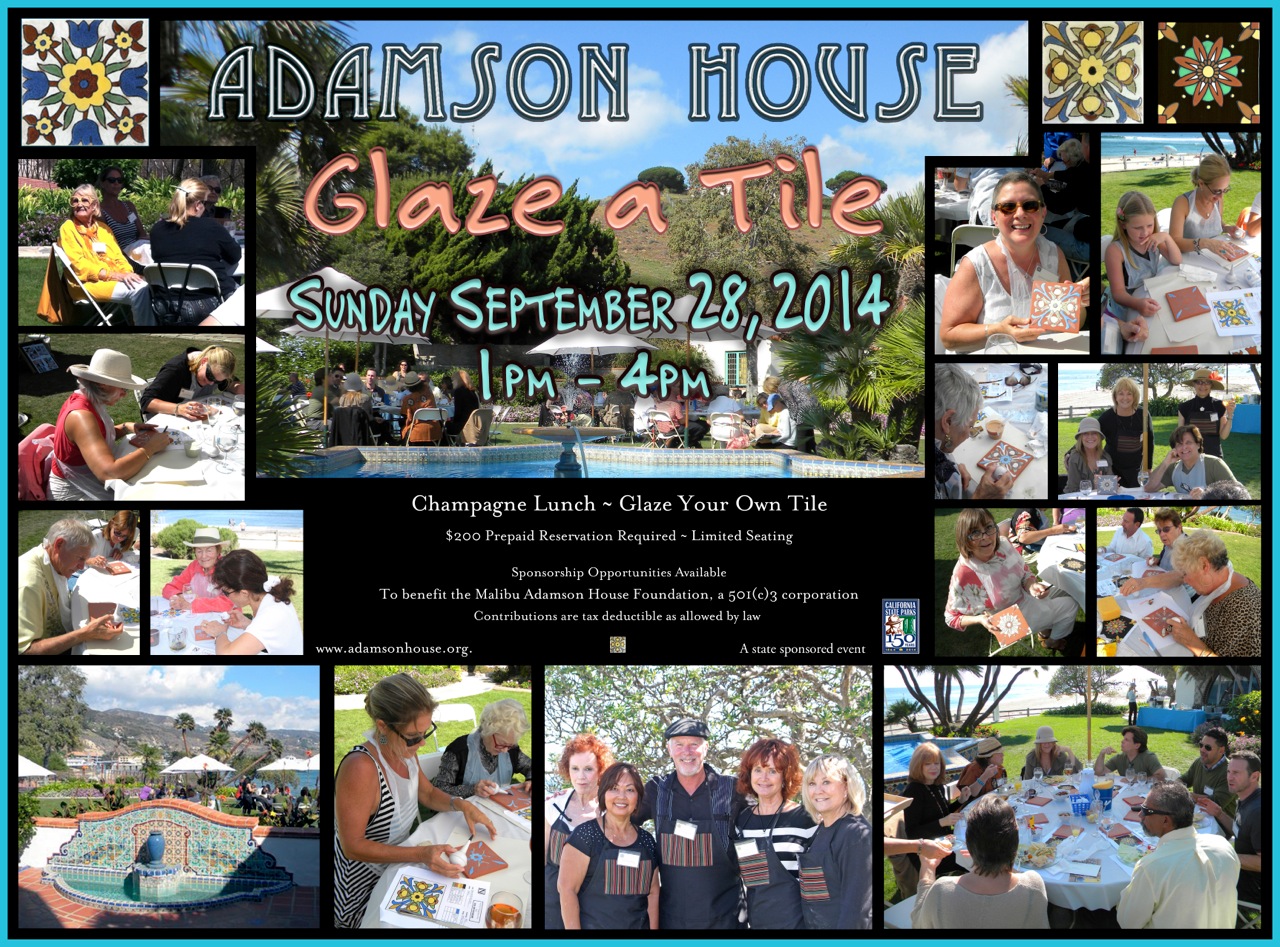 For those of you, like me, who cherish the Adamson House in Malibu as a beautiful example of Spanish Colonial Revival architecture and for its gorgeous tile work, you don’t want to miss “Glaze a Tile” fundraiser this Sunday, Sept. 28.