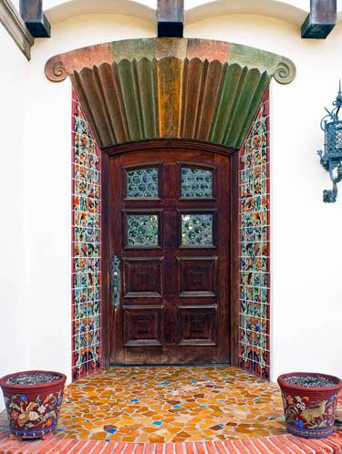 I fell in love with the Adamson House many years ago when I was a design student at UCLA Extension. It has played an important part in my career as a design historian, teacher and consultant. It has helped me develop an eye for detail – and what incredible detail can be found in this house! From the tile work to the “donkey-arch” fireplaces and windows to the carved leather light sconces to the decorative paintings on some of the ceilings and walls, this house is a visual feast.